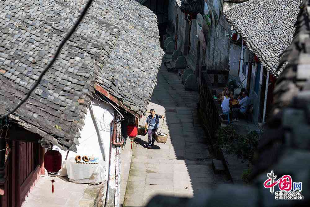 據(jù)說周子古鎮(zhèn)以前熱鬧非凡,號(hào)子此起彼伏,挑夫絡(luò)繹不絕,如今昔日熱鬧場(chǎng)景不在,隨處可見的是很多老年人在這里悠閑的生活。中國(guó)網(wǎng)記者 董寧攝影