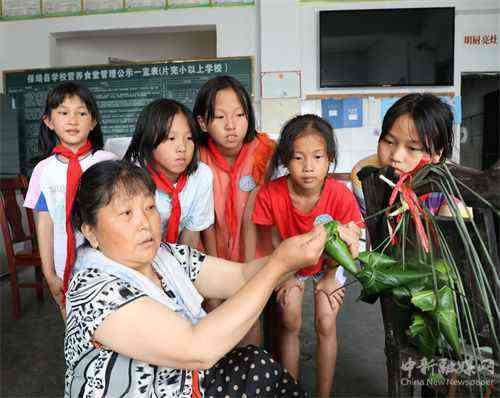 6月10日,在湖南省保靖縣隆頭小學(xué),教師與留守兒童包粽子、迎端午。端午節(jié)臨近,該校學(xué)生在老師的指導(dǎo)下學(xué)包粽子,聽老師講解端午節(jié)故事傳承傳統(tǒng)民俗,體驗(yàn)端午文化,感受民俗魅力,迎接端午節(jié)的到來。(俞采華 陳亞平)