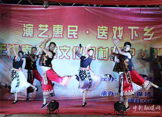 9月23日晚,在湖南省保靖縣清水坪鎮(zhèn)壩木村,演員為村民表演文藝節(jié)目。連日來(lái),該鎮(zhèn)文體廣電服務(wù)站與縣文藝隊(duì)聯(lián)合開展文化惠民送戲下鄉(xiāng)活動(dòng),把優(yōu)秀的文藝節(jié)目送到村民家門口,豐富群眾的精神文化生活,讓他們近距離感受文藝的魅力,為鄉(xiāng)村文化振興添磚加瓦。(俞采華 吳大清)