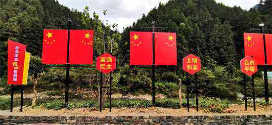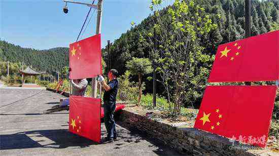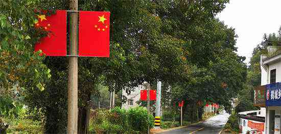 近日,安徽省休寧縣鶴城鄉(xiāng)政府駐地S222省道沿線兩側(cè)主街道上整齊地懸掛了一面面鮮艷的五星紅旗,讓當(dāng)?shù)厝罕娫谙矐c祥和的氣氛中,迎來(lái)第72個(gè)國(guó)慶佳節(jié)。(盛紅兵)