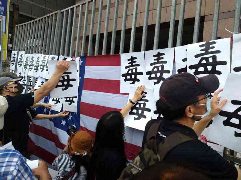 圖:臺當局淪為美國“反華”棋子,引發(fā)民怨。圖為臺灣民眾不滿臺當局開放美國瘦肉精豬肉進口。\資料圖片