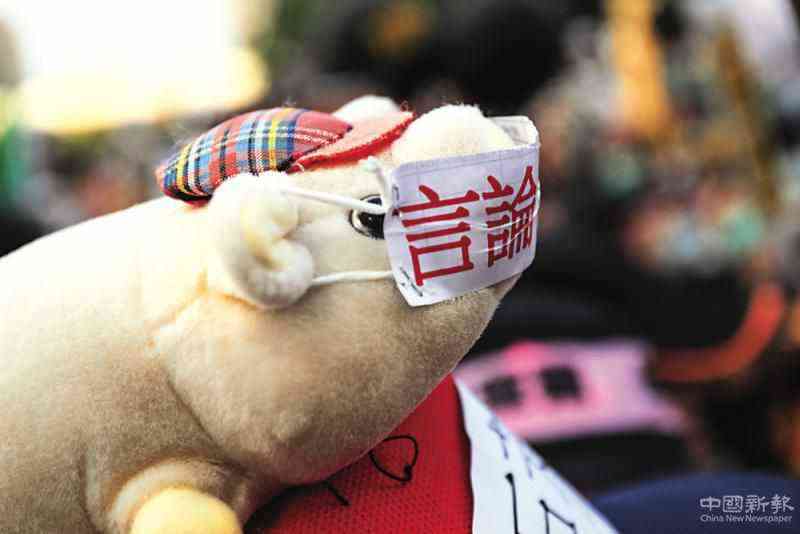 圖:臺灣民眾諷刺蔡政府扼殺言論自由。\資料圖片