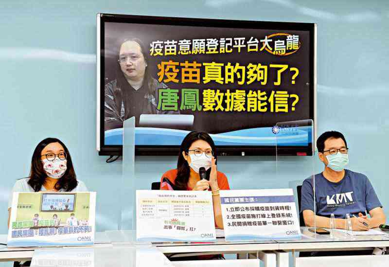 圖:國民黨立委召開記者會,要求臺當(dāng)局交代疫苗到貨時程。\中央社