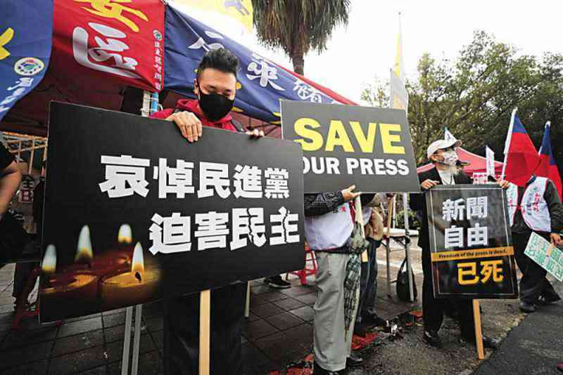 圖:臺灣輿論多次抨擊蔡英文上臺后實施的多項政策破壞臺灣民主。圖為臺灣民眾舉行集會批評民進黨當局打壓言論自由。\資料圖片