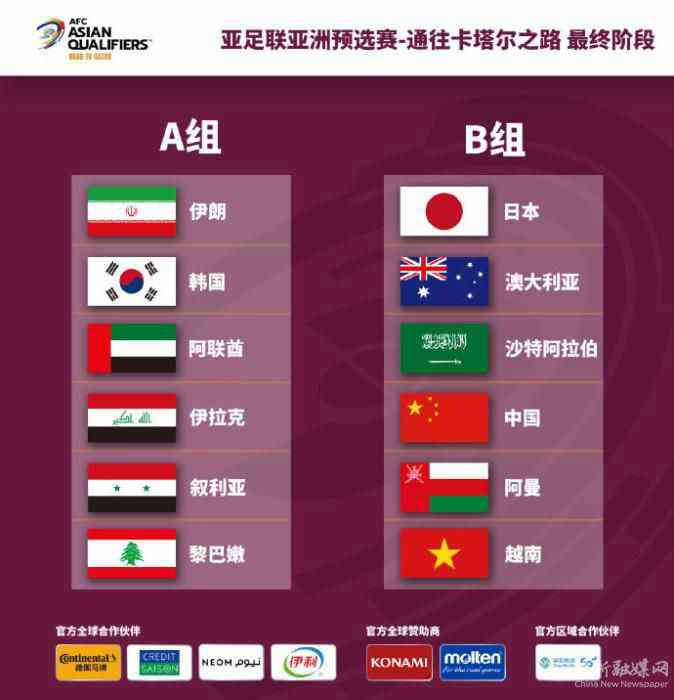 A組:伊朗、韓國、阿聯(lián)酋、伊拉克、敘利亞、黎巴嫩