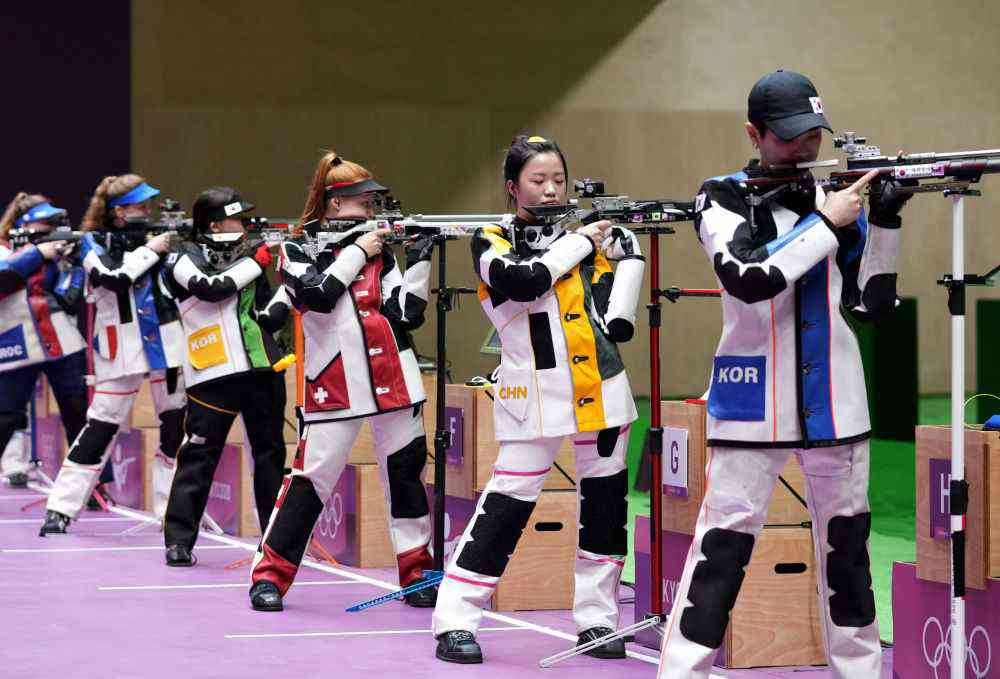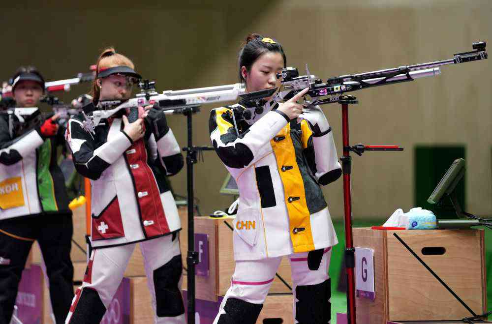 7月23日,東京奧運(yùn)會(huì)射擊女子10米氣步槍決賽在日本東京朝霞射擊場(chǎng)進(jìn)行。中國(guó)選手楊倩獲得女子10米氣步槍金牌。