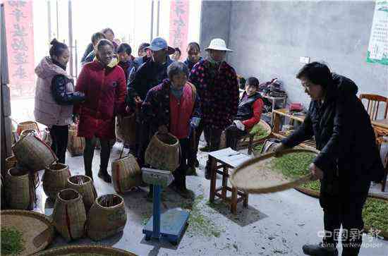2021年3月10日,菖蒲山茶葉基地正在回收村民采摘的新茶。