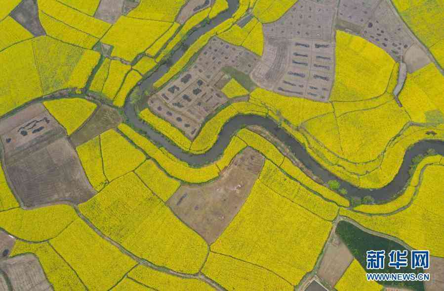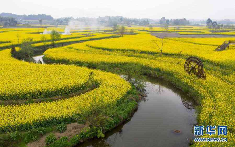安州區(qū)秀水鎮(zhèn)龍泉村的油菜花海(3月14日攝,無人機(jī)照片)。