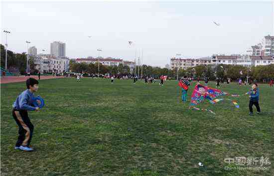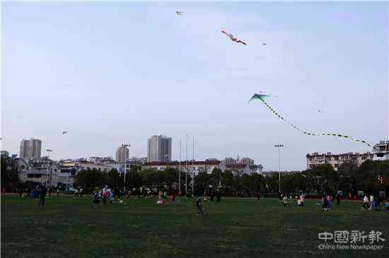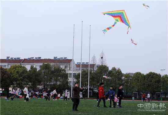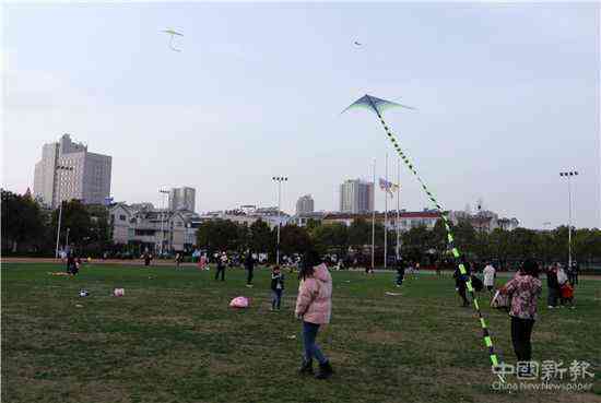 2021年3月21日周日晴好,春意濃濃,安徽省合肥市廬江縣全面健身活動中心,很多年輕家長在帶著孩子在放飛風(fēng)箏。