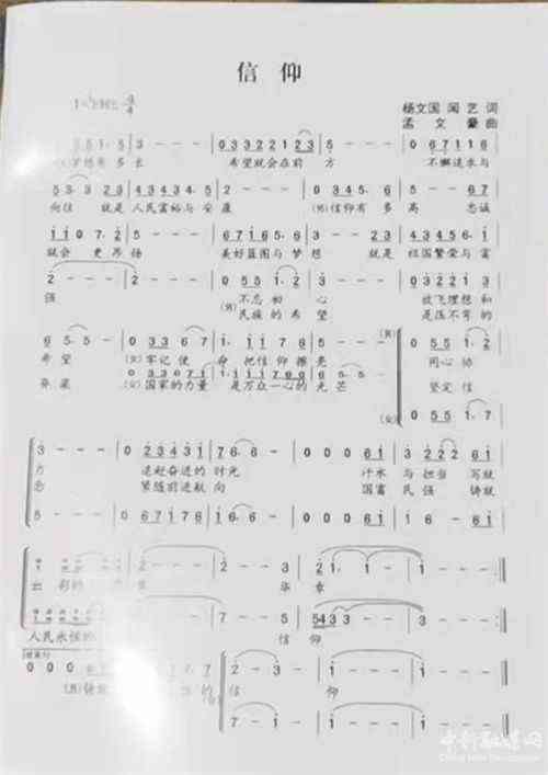 2017年12月20日,歌曲《信仰》的歌詞發(fā)表于《人民日?qǐng)?bào)》大地副刊,經(jīng)作曲家譜曲后,首次亮相CCTV-1《改革開放再出發(fā)》心連心深圳前海慰問演出節(jié)目;