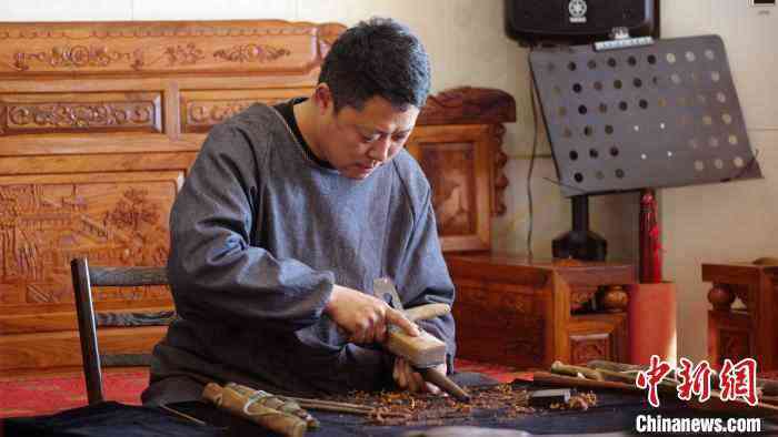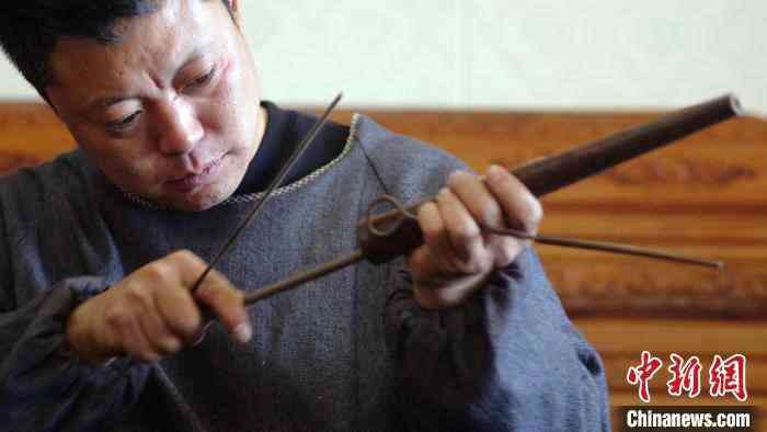 李曉盼在手工制作嗩吶。吳瓊 攝