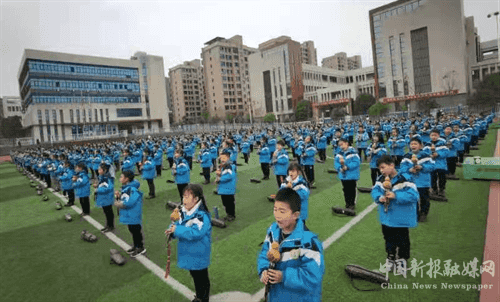 12月15日,臨湘市第六完全小學(xué)操場上,600多名學(xué)生,一個個朝氣蓬勃,青春煥發(fā)。手持葫蘆絲,氣定神閑,憑借嫻熟的技巧,飽滿的熱情演繹著“兄弟倆”“瑪麗有只小羊羔”“粉刷匠”“生日歌”等歌曲,一首首動人的旋律在校園上空徘徊。舒適的綠化環(huán)境,濃郁的校園文化氣息,盡情展示著“雙減”政策下學(xué)生青春洋溢、積極進(jìn)取的精神面貌。