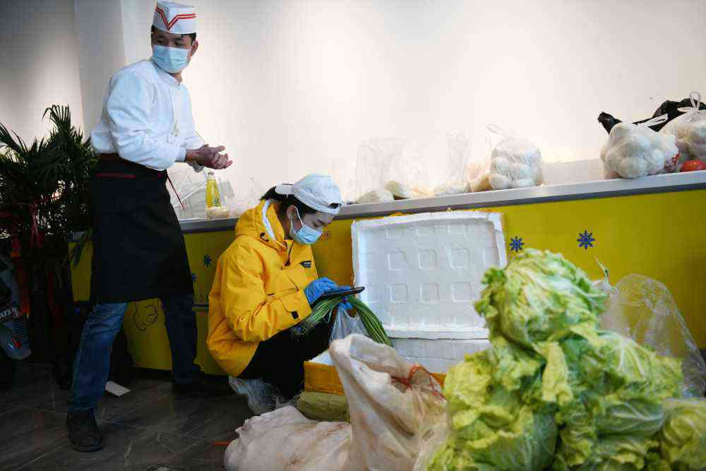 ↑1月11日,汪新建(左)和張琪琪夫婦在準(zhǔn)備給鄰居們送菜。生活在河北石家莊市玉蘭苑小區(qū)的夫婦二人,在小區(qū)門口開(kāi)了一家餐廳,夫妻倆帶著廚師和司機(jī),為社區(qū)的工作人員免費(fèi)提供盒飯,義務(wù)給鄰居們跑腿買菜。