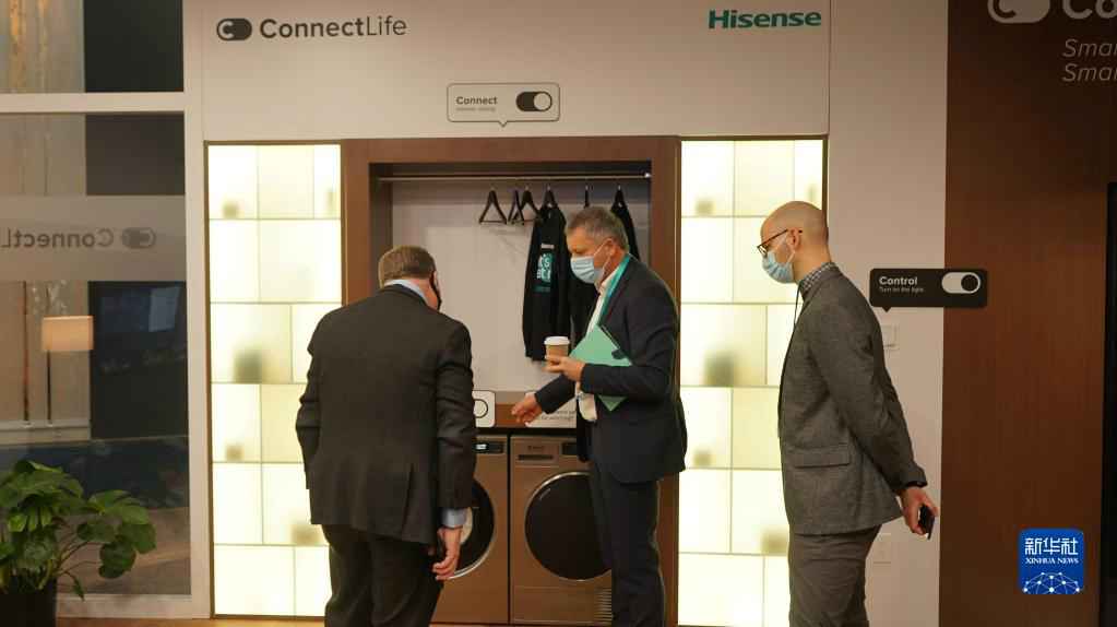 1月5日,人們在2022年美國拉斯維加斯消費電子展中國公司海信展示區(qū)參觀。