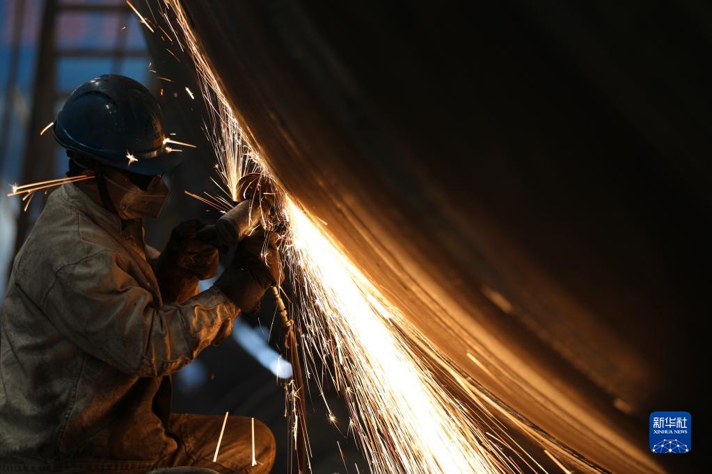 3月23日,工人在哈電集團哈爾濱鍋爐廠有限責(zé)任公司生產(chǎn)車間內(nèi)進行焊接作業(yè)。