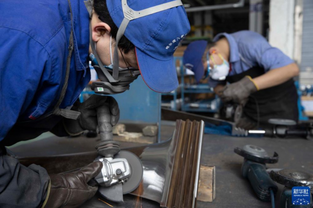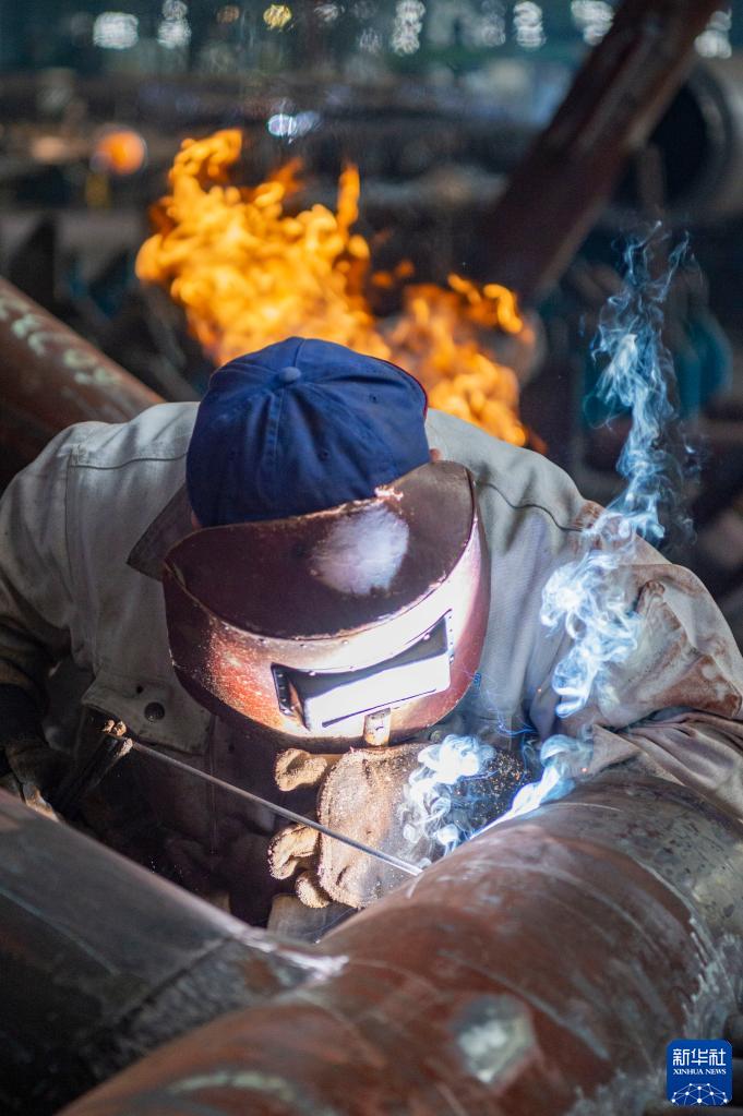 3月28日,工人在哈電集團(tuán)哈爾濱鍋爐廠有限責(zé)任公司生產(chǎn)車(chē)間內(nèi)作業(yè)。