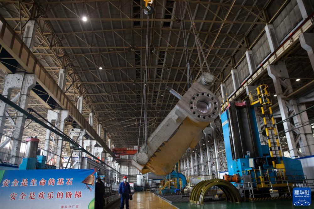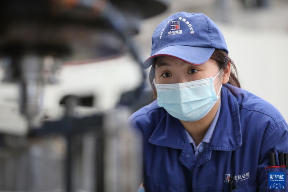 3月28日,工人在哈電集團(tuán)哈爾濱汽輪機(jī)廠有限責(zé)任公司生產(chǎn)車(chē)間作業(yè)。