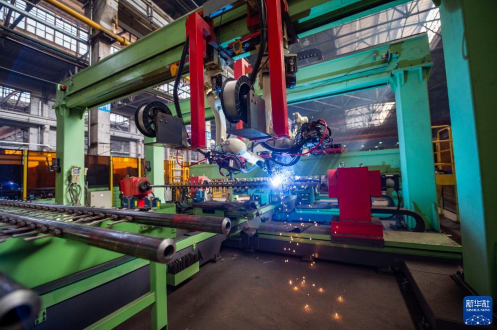 3月28日,在哈電集團(tuán)哈爾濱鍋爐廠有限責(zé)任公司生產(chǎn)車(chē)間內(nèi),吊掛管自動(dòng)線正在作業(yè)。
