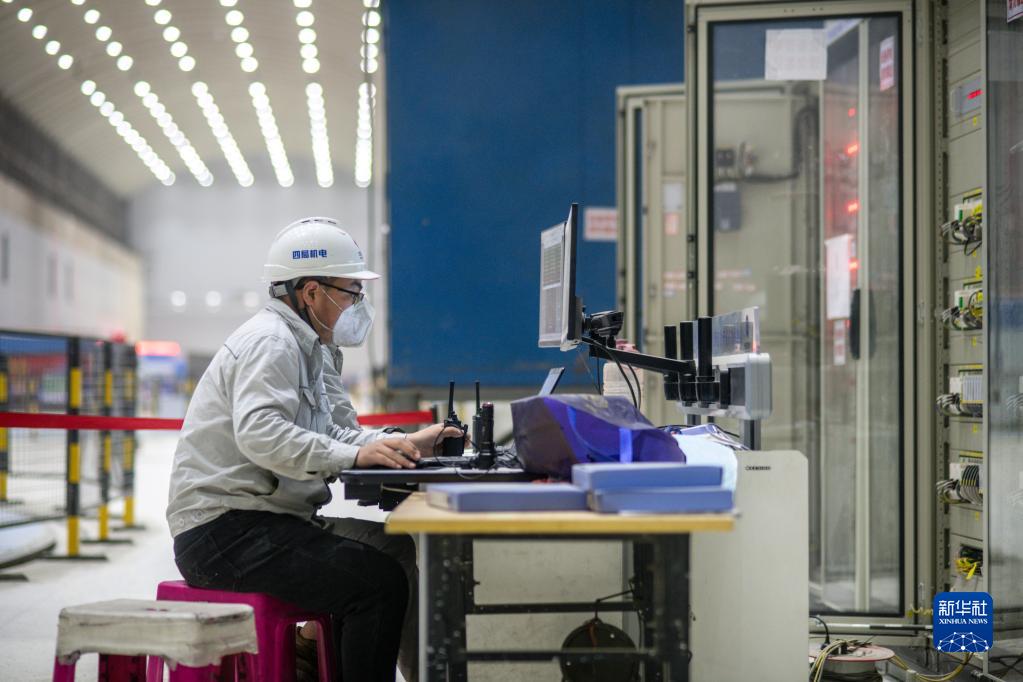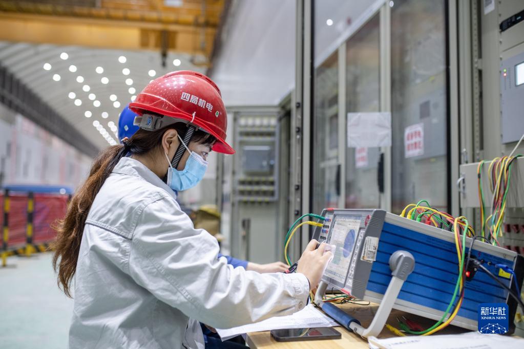 4月21日,工作人員在白鶴灘水電站左岸地下廠房對(duì)機(jī)組進(jìn)行調(diào)試。