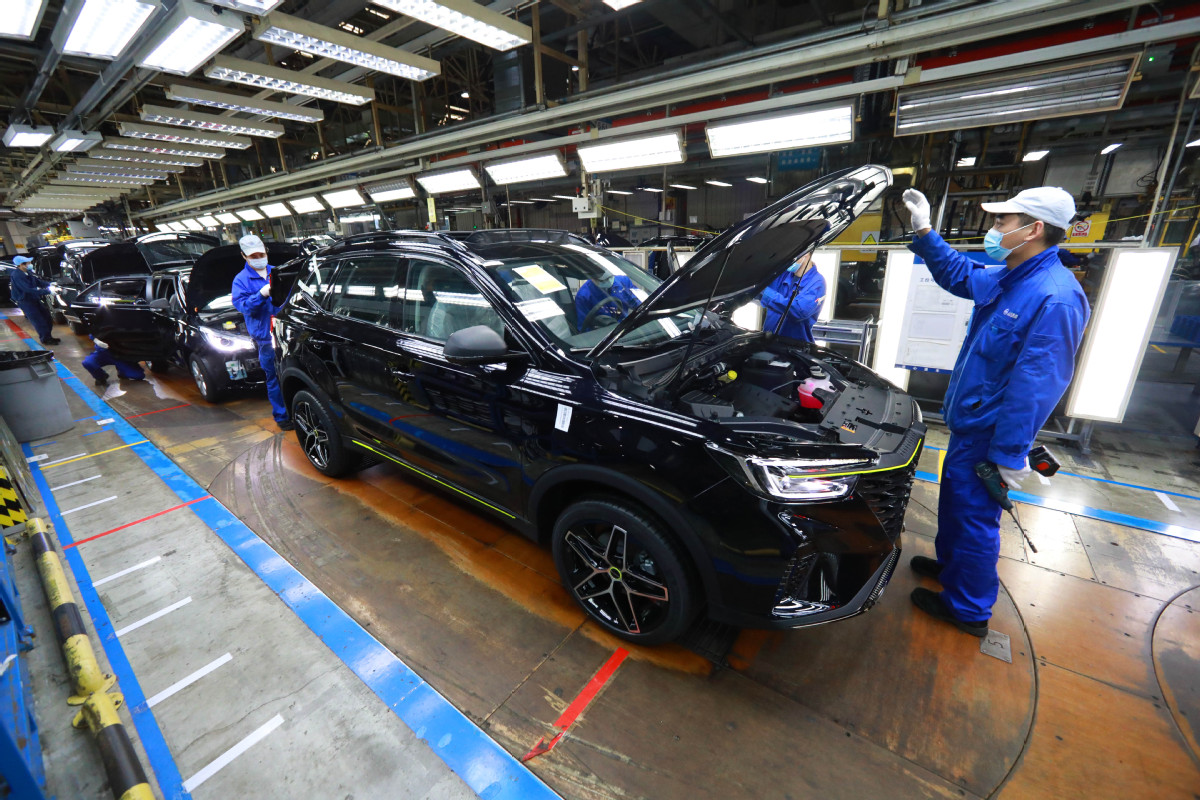 4月23日,工人在上汽臨港總裝車間進(jìn)行作業(yè)。 中國(guó)日?qǐng)?bào)記者 朱興鑫 攝