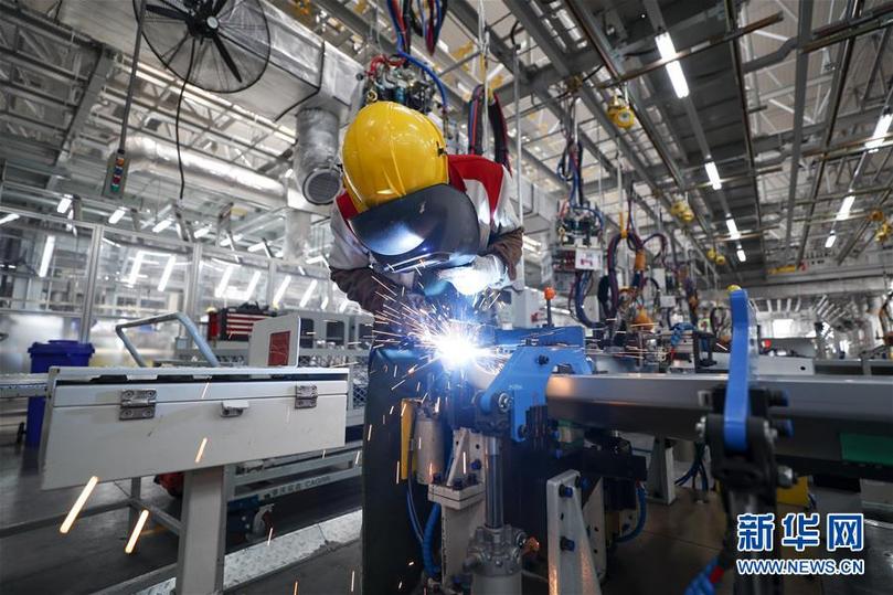 在長城汽車股份有限公司重慶分公司,焊裝車間的員工正在進行焊接作業(yè)。新華社(黃偉 攝) 新華網發(fā)