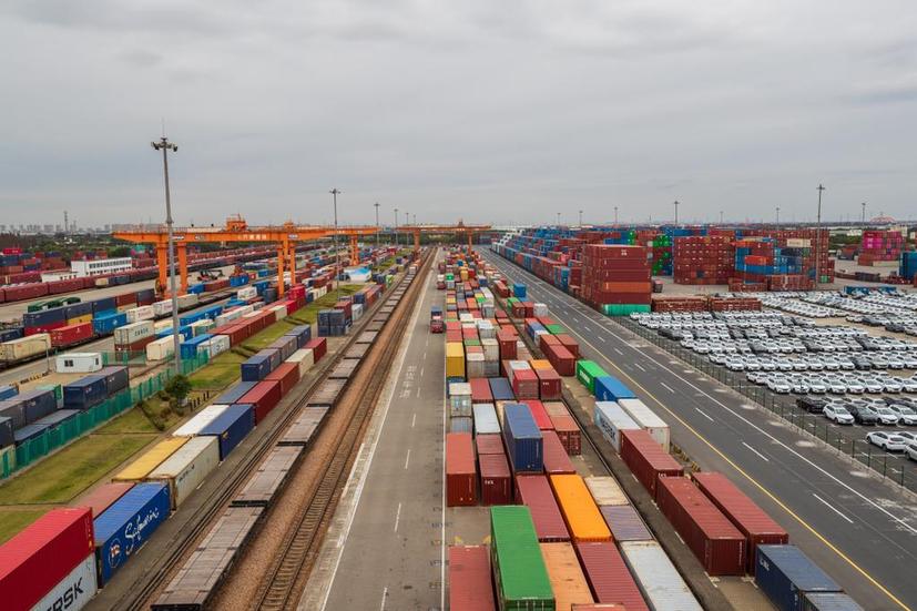 圖為蘆潮港站集裝箱堆場。中國鐵路上海局集團供圖。新華網發(fā)