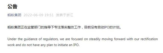 螞蟻集團(tuán):正落實(shí)整改工作 目前沒(méi)有啟動(dòng)IPO計(jì)劃