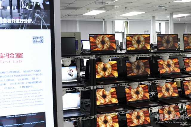 7月18日拍攝的系統(tǒng)穩(wěn)定性實(shí)驗(yàn)室內(nèi)進(jìn)行測(cè)試的筆記本電腦。中國(guó)日?qǐng)?bào)記者 馮永斌 攝