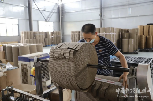 “現(xiàn)在我們廠里有20多臺(tái)自己研發(fā)的機(jī)器,從加工瓦楞紙、分切、纏碗、貼紙、粘防滑墊、包裝,再到打包、物流出貨,已經(jīng)形成了一個(gè)完整的鏈條,一天就可完成1萬多單的訂單量。”談到技術(shù)創(chuàng)新,張金金自豪地說。
