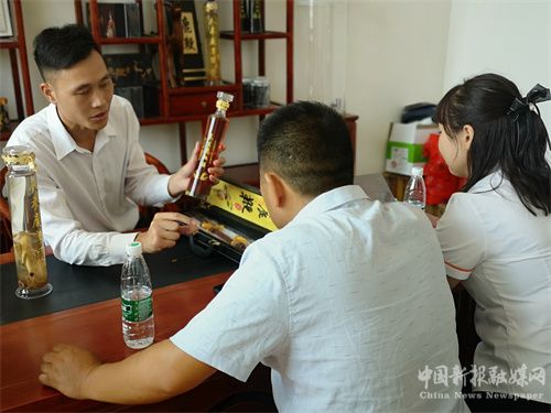 洞口縣晨軒梅花鹿養(yǎng)殖有限公司總經(jīng)理尹國輝在為客戶介紹產(chǎn)品營養(yǎng)功能。(劉大華攝