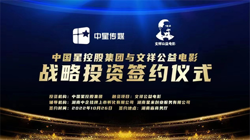 中國星控股集團(tuán)與文祥公益電影達(dá)成戰(zhàn)略投資合作