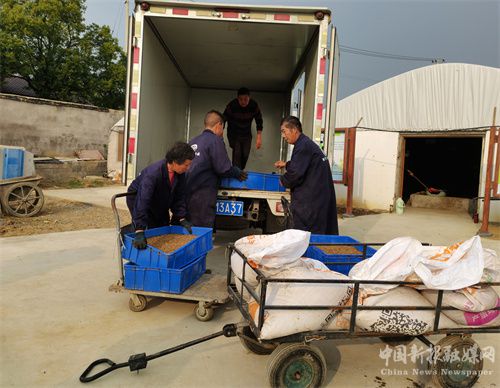 2022年10月31日,安徽省合肥市廬江縣白山鎮(zhèn)五艾村黑水虻養(yǎng)殖基地,員工正在外運(yùn)高價(jià)值動(dòng)物蛋白黑水虻幼蟲。