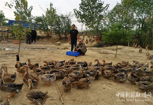 2022年10月31日,安徽省合肥市廬江縣白山鎮(zhèn)十聯(lián)村自平家庭農(nóng)場(chǎng),員工正在為雞鴨飼喂高價(jià)值動(dòng)物蛋白黑水虻幼蟲(右二為余宏偉)。