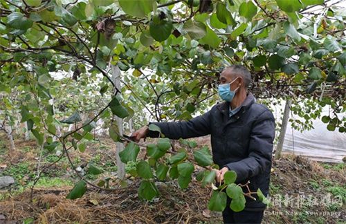 11月22日,湖南美味佳瑤隆回縣金石橋生態(tài)產(chǎn)業(yè)園內(nèi),工人正在為獼猴桃修枝。小雪來臨,該鎮(zhèn)產(chǎn)業(yè)種植基地,抓住季節(jié)對果樹開展修枝、挖凼、施肥、培土等管護工作,有利于果樹抗寒、吸收養(yǎng)分,促進來年高產(chǎn)豐收。(賀上升攝)