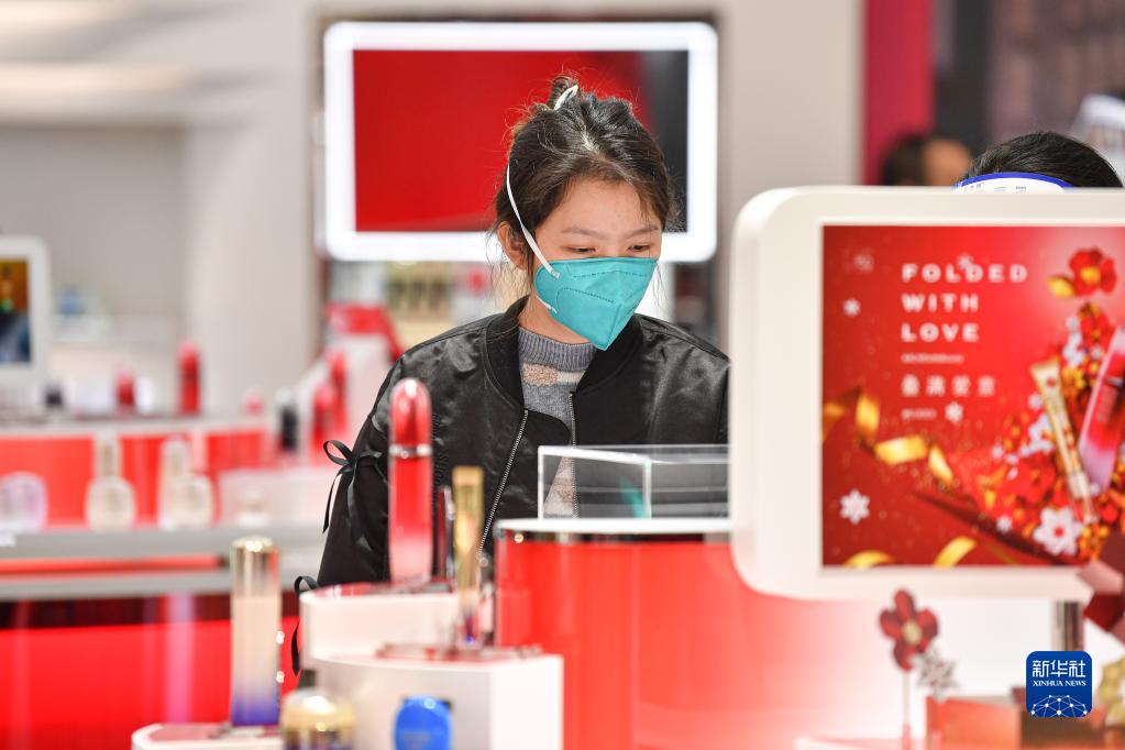 12月17日,消費(fèi)者在中免集團(tuán)海口國際免稅城選購商品。