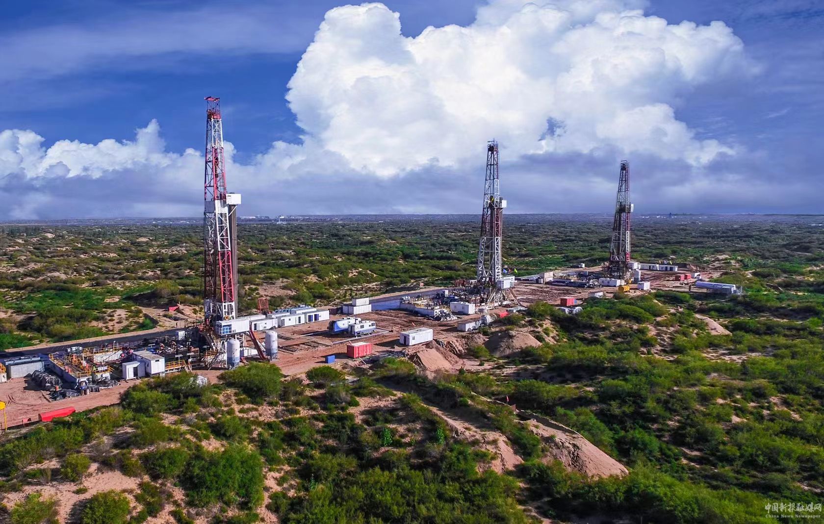 長慶油田建成我國最大的天然氣生產(chǎn)基地,承擔著保障京津冀與陜甘寧蒙晉區(qū)域40多個大中城市供氣需求。圖為北京主力氣源地——長慶靖邊氣田產(chǎn)能建設現(xiàn)場。