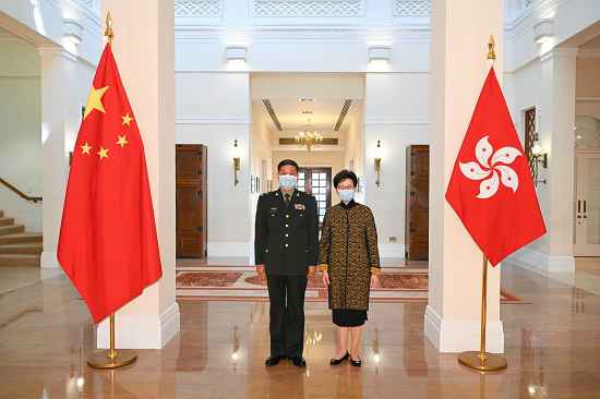 行政長官林鄭月娥今日(10日)上午在禮賓府與中國人民解放軍駐香港部隊(駐港部隊)司令員彭京堂少將會面,行政長官辦公室主任陳國基亦有出席。
