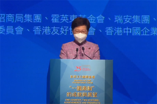 由紫荊文化集團(tuán)主辦的“紫荊文化國(guó)際論壇——‘一國(guó)兩制’的成就與展望”今日(16日)舉行,行政長(zhǎng)官林鄭月娥出席論壇并致辭。她回顧其任內(nèi)的成就,指香港已進(jìn)入穩(wěn)定、繁榮及充滿機(jī)遇的新時(shí)代。林鄭月娥表示,自己即將卸任,相信香港未來(lái)在政治上將更穩(wěn)定,在國(guó)家的大力支持下,香港的經(jīng)濟(jì)未來(lái)將更穩(wěn)固。