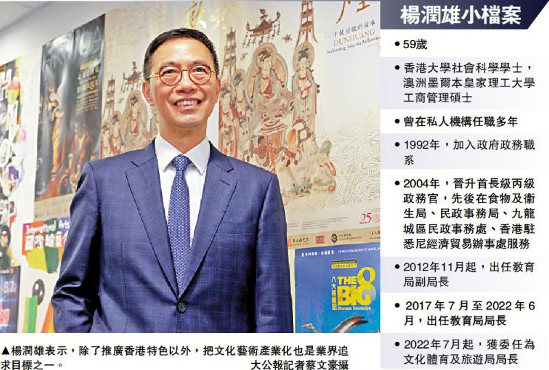楊潤雄表示,上任后的工作重點之一,要從政府架構(gòu)層面加強對文化體育旅游的總體統(tǒng)籌和協(xié)作,與不同政策局合作,將文化體育和旅游的政策和項目橫向融合,發(fā)揮協(xié)作潛能。