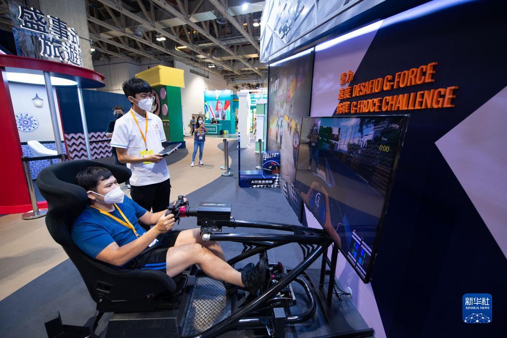 9月23日,觀眾在澳門國際旅游(產(chǎn)業(yè))博覽會(huì)澳門館體驗(yàn)賽車。新華社記者 張金加 攝