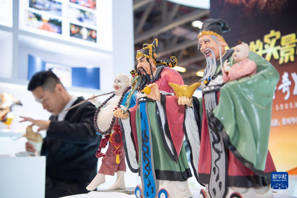 9月23日在澳門國際旅游(產(chǎn)業(yè))博覽會(huì)陜西館拍攝的泥塑。新華社記者 張金加 攝