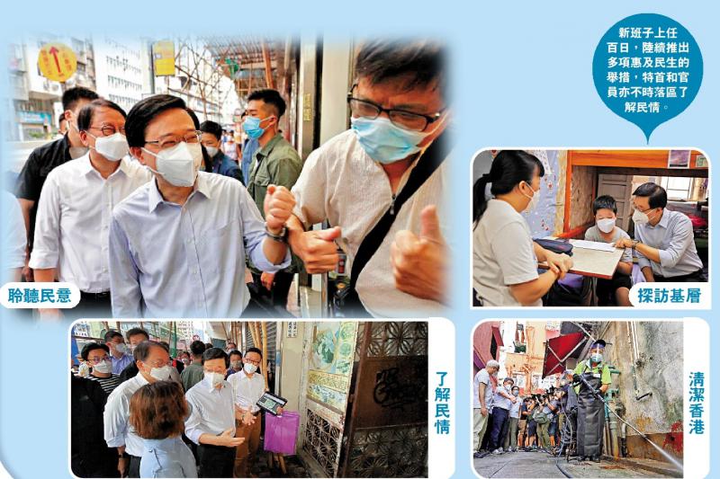 昨天是行政長官李家超上任一百天,新班子開局良好,市民紛紛點贊。李家超抱著“持之以恒,必有所成”的信念,及時回應(yīng)民意,設(shè)立工作組處理香港民生痼疾,亦在“抗疫不躺平”與“生活正?;?rdquo;之間盡力取得平衡,取得明顯成效。
