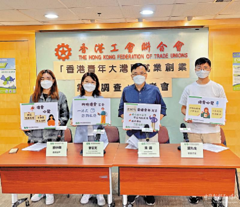圖:工聯(lián)會針對香港青年到大灣區(qū)就業(yè)創(chuàng)業(yè)需求,進行問卷調(diào)查,結果發(fā)現(xiàn)77%受訪者看好大灣區(qū)前景。