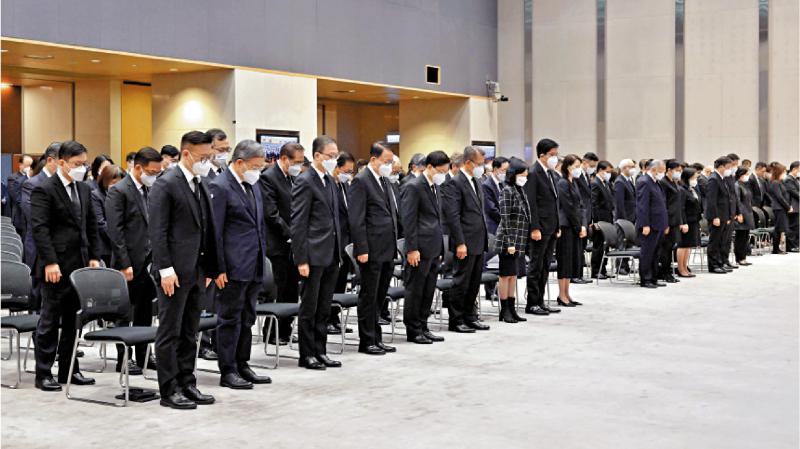 圖:行政長官李家超聯(lián)同各主要官員、行政會(huì)議成員、政策局及部門的首長級(jí)人員在收看江澤民追悼大會(huì)時(shí),共同默哀3分鐘。