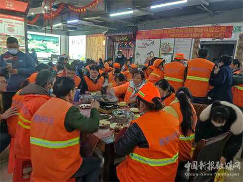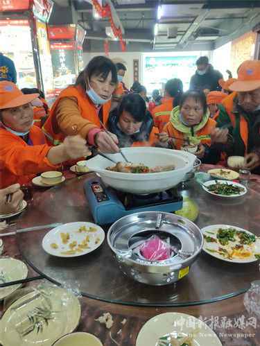 “祝您們新年快樂,工作順利,全家幸福!”1月14日中午12點,長沙高橋財富大廈的一家店內(nèi)(品兒時味)十分熱鬧,50名身穿橘黃色衣服的環(huán)衛(wèi)工人,圍坐在5張桌子邊,正在享用一頓大餐。原來,這家企業(yè)的老板張尚友,正邀請環(huán)衛(wèi)工吃團(tuán)圓飯。這樣的團(tuán)圓飯活動,已經(jīng)是連續(xù)第13年舉行了。