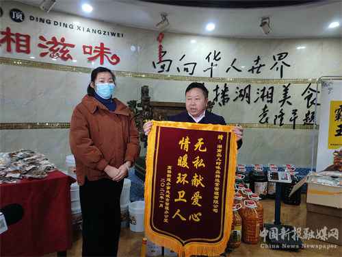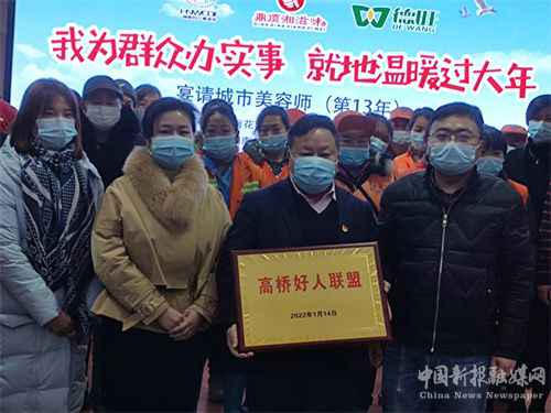 在暖心年飯之前,高橋街道辦事處和高橋社區(qū)還給張尚友的門店頒發(fā)了“高橋好人聯(lián)盟”的牌匾,高橋好人——工作在環(huán)衛(wèi)戰(zhàn)線多年的管石宏發(fā)表了倡議書。高橋街道辦事處城管辦環(huán)衛(wèi)負(fù)責(zé)人顏家敏還給張尚友送了一面“無私獻(xiàn)愛心,情暖環(huán)衛(wèi)工”的錦旗。