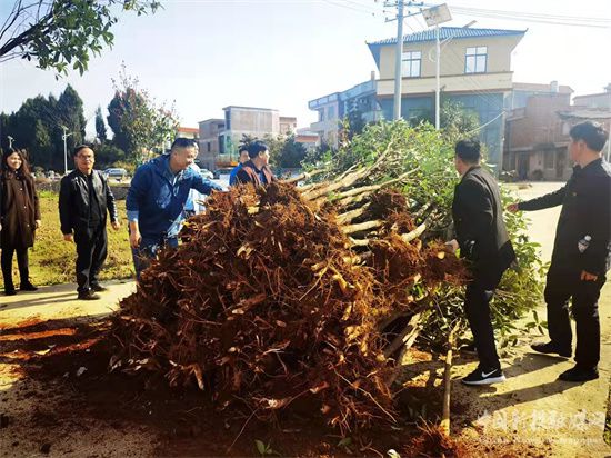 雨后放晴,春天的氣息撲面而來。該局黨員干部、鄉(xiāng)村振興幫扶村工作隊員、村干部分工合作、干勁十足,在村城塘溪村新修的機耕道兩邊有的挖坑松土,有的扶正樹苗,有的培土,有的澆水……植樹現(xiàn)場熱火朝天。