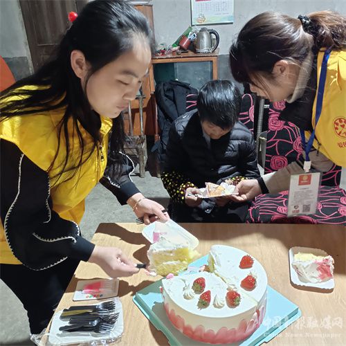 吃過了豐盛的晚餐后,大家又為老人點(diǎn)起了生日蠟燭,圍坐在一起唱起了《生日快樂歌》,志愿者握著老人的手教她切生日蛋糕,然后開心的將生日蛋糕分給大家吃……老人說話本就有障礙,但是所有人都清晰的聽到她用沙啞的聲音不停說著:“謝謝你們!謝謝大家!”聞?dòng)嵹s來的鄰居大姐說:“這是這么多年有史以來第一次有人給她過生日,她家第一次這么熱鬧。”老人的生日愿望也簡(jiǎn)單得讓人心疼:“希望你們下次再來玩……”(特約記者 劉露 通訊員 黃可)