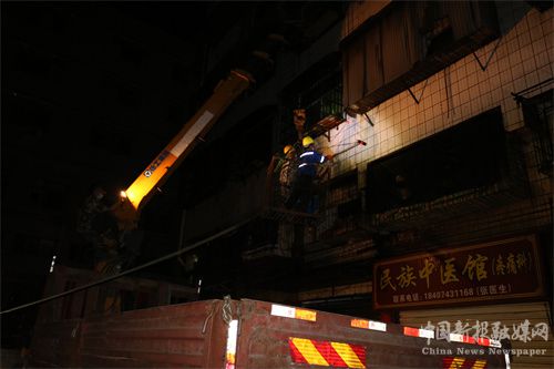從下午六點到凌晨十二點,經過整整6小時的清洗,讓群眾的墻壁亮了起來。(向圣云)