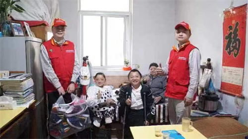 廖紅是湘鄉(xiāng)市月山鎮(zhèn)白龍村人,家里五口人,母親、大姐和他3人都是脆骨癥患者(俗稱“玻璃人”),雖然身高不足80厘米,但卻是大家眼中的“小巨人”。父親去世后,他靠著頑強(qiáng)意志,日打三份工,維持著一家人生計(jì),熱心公益的他還是長(zhǎng)沙市多個(gè)公益組織的志愿者?;氐搅渭t家中,他同患“脆骨癥”的大姐聽(tīng)說(shuō)自己做的棉鞋被現(xiàn)場(chǎng)購(gòu)買(mǎi)后,臉上掛滿了自信與自豪。雖然條件艱苦,但他們眼中那份對(duì)生活的熱愛(ài),也鼓舞了在場(chǎng)的服務(wù)隊(duì)員們要珍惜生活,愛(ài)崗敬業(yè),努力實(shí)現(xiàn)自己的人生價(jià)值。